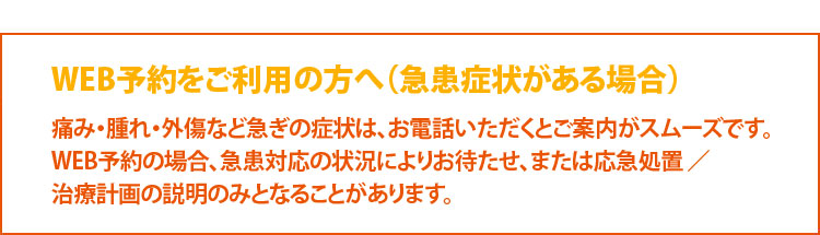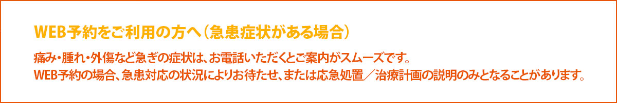 急な歯の痛みや詰め物が取れるなど急なトラブルは予約なしでも緊急処置いたしますので、遠慮せずお電話にてご相談ください。